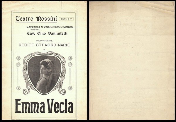 Teatro Rossini. Compagnia di Opere comiche e Operette diretta dal Cav. Gino Vannutelli. Prossimamente Recite straordinarie di Emma Vecla. Locandina