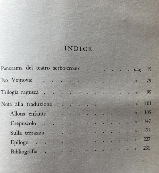 Contiene: Trilogia ragusea (che comprende): Allons enfants; crepuscolo; sulla terrazza; Ivo Vojnovic.