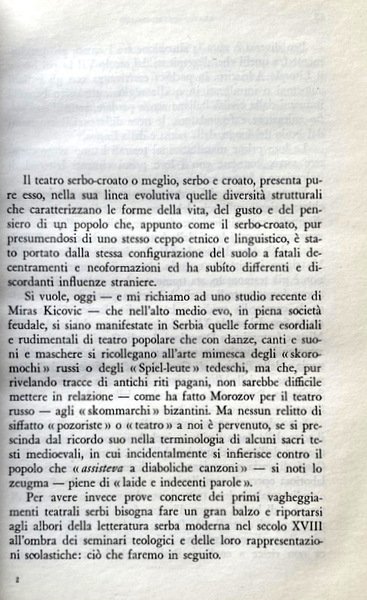 Il presente volume, curato da Arturo Cronia, si apre con una lucida e informatissima introduzione, la quale, segue ed interpreta costantemente l'evoluzione del teatro serbo-croato nel quadro della letteratura di quel popolo che ha gelosamente custodito una spiccata individualità e un fiero spirito di indipendenza.