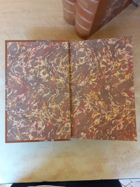 - Rilegatura Rigoldi in pelle e carta marmorizzata con custodia. Taglio superiore con 19 passaggi d'oro.