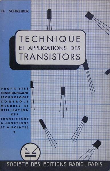 Société des éditions radio, Paris, 1955. Grand in/8 broché, couverture illustrée, 157 pages, figures en noir dans le texte. Propriétés, fonctionnement , technologie, contrôle, mesures et utilisation des transistors à jonctions et à pointes.