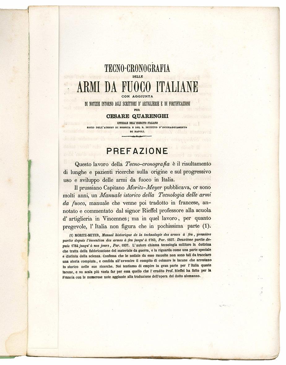 Tecno-cronografia delle armi da fuoco italiane con aggiunta di notizie intorno agli scrittori d'artiglierie e di fortificazioni.