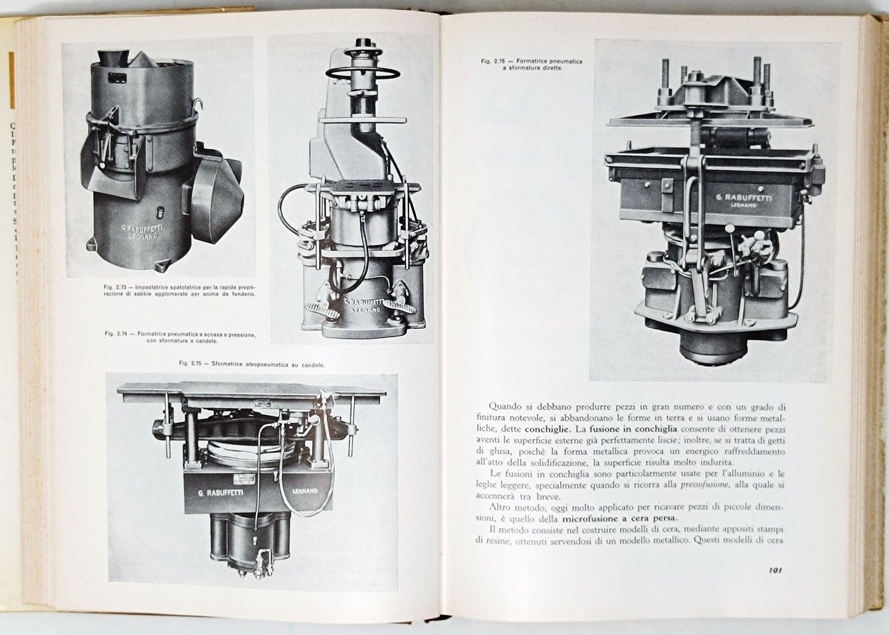 Ad uso degli Istituti tecnici industriali (esclusa la sezione meccanica) e delle Scuole per l'industria meccanica degli Istituti Professionali. Con 47 tabelle e 68 tavole. Terza ristampa della terza edizione, 1968. Paine: XVI + 502. Formato: 17,5 x 25 cm circa. Stato di conservazione: strappi sui bordi della sovracoperta, una firma di appartenenza a penna sul margine superiore del primo foglio bianco, qualche rara e leggera macchia gialla ma, nel complesso, un buon esemplare. Privo di annotazioni, sottolineature, evidenziazioni o altri segni nel testo. Copertina cartonata rigida in tutta tela con sovraccoperta illustrata. Opera estremamente ricca di figure nel testo e di immagini fotografiche in nero dei vari macchinari.