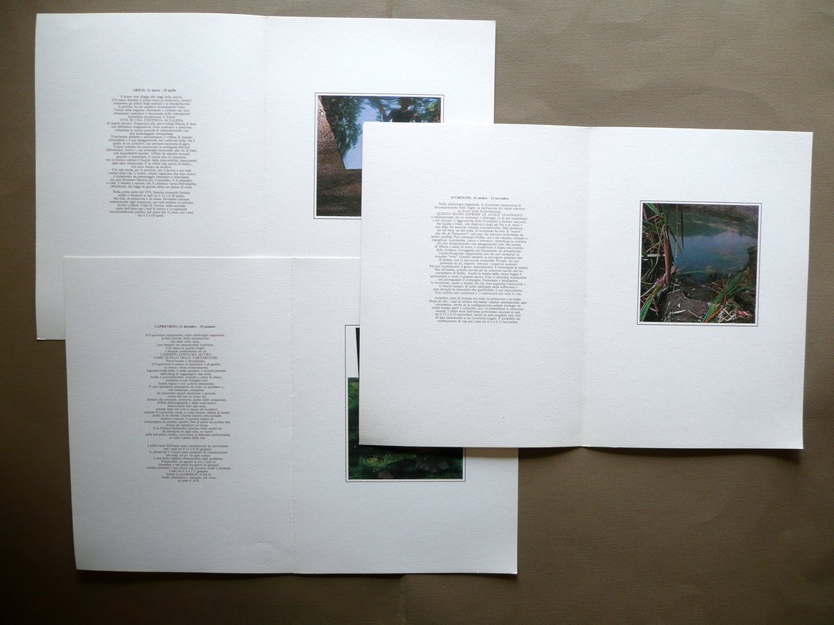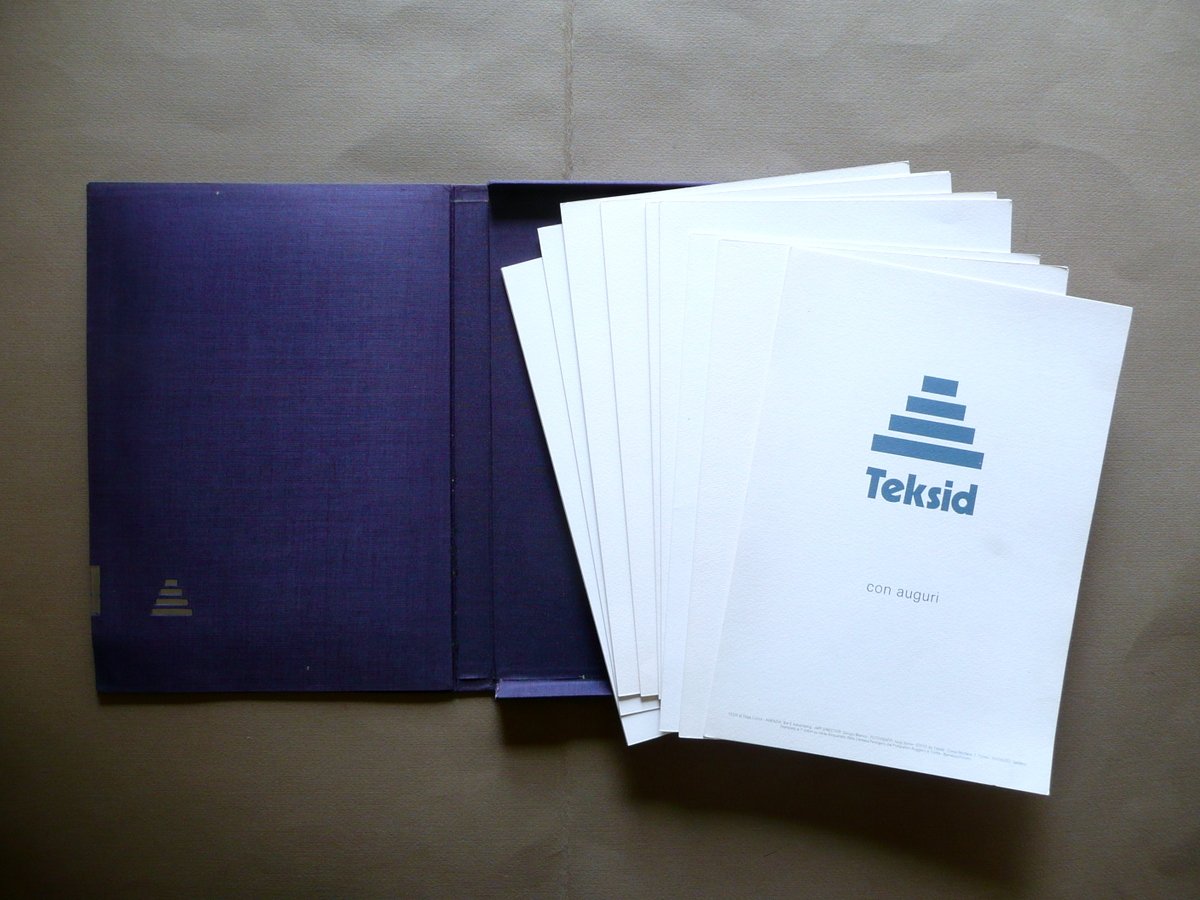 Cartella omaggio, Teksid con auguri - Cartella omaggio con raffigurazione e descrizione dei dodici segni zodiacali Testi di Olga Zonca Art Director: Giorgio Bianco Fotografo: Luigi Spina Teksid, Torino, s. d. (ma 1978); cartella costituita dal frontespizio e da 12 bifoli in cartoncino ill. a colori, ciascuno dei quali è dedicato a un segno zodiacale (vedi foto). I bifoli sono contenuti entro cartella ed. muta in cartonato telato. Cartella completa di tutti i segni zodiacali. Condizioni di conservazione Bifoli in ottime condizioni con minime tracce di utilizzo. Cartella ed. ben conservata con pressoché trascurabili accenni di sporco, margini e angoli con poche piccole mancanze al rivestimento telato. SETT139.L13805 N