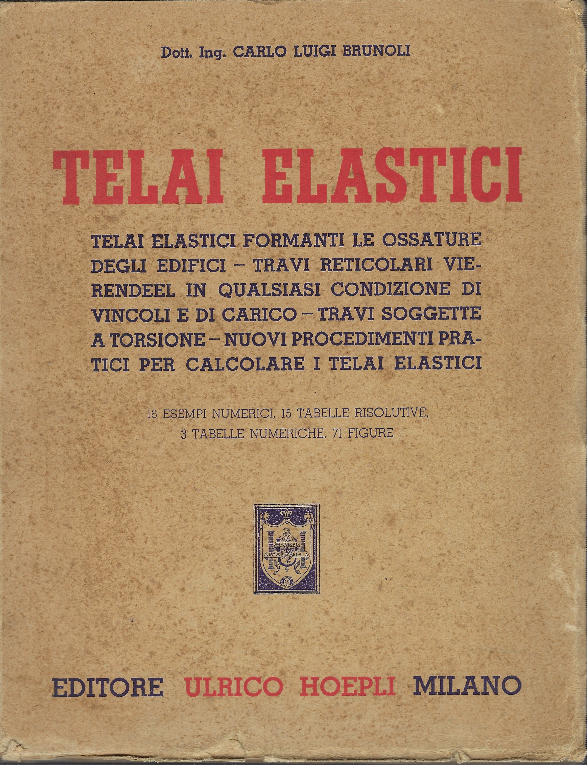 Telai Elastici Formanti Le Ossature Degli Edifici - Travi Reticolarivierendeel In Qualsiasi Condizione Di Vincoli E Di Carico - Travi Soggette A Torsione - Nuovi Procedimenti Pratici Per Calcolare I Telai Elastici. Milano Hoepli 1951. In-8; Pp. Xii + 224, Con 16 Esempi Numerici, 15 Tabelle Risolutive, 3 Tabelle Numeriche, 71 Figure, Qualche Fioritura E Segno Di Usura,Ma Nel Complesso Buona Copia.