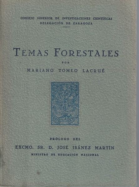 Temas Forrestales por Mariano Tome Lacruè, Catedratico Universidad de Zaragoza, prologo del Excmo. sr. d. Josè Ibànez Martìn, ministro de educacion nacional. Zagoza Artes Graficas E. Brdejo Casanal, 1943. Copia n. 0139