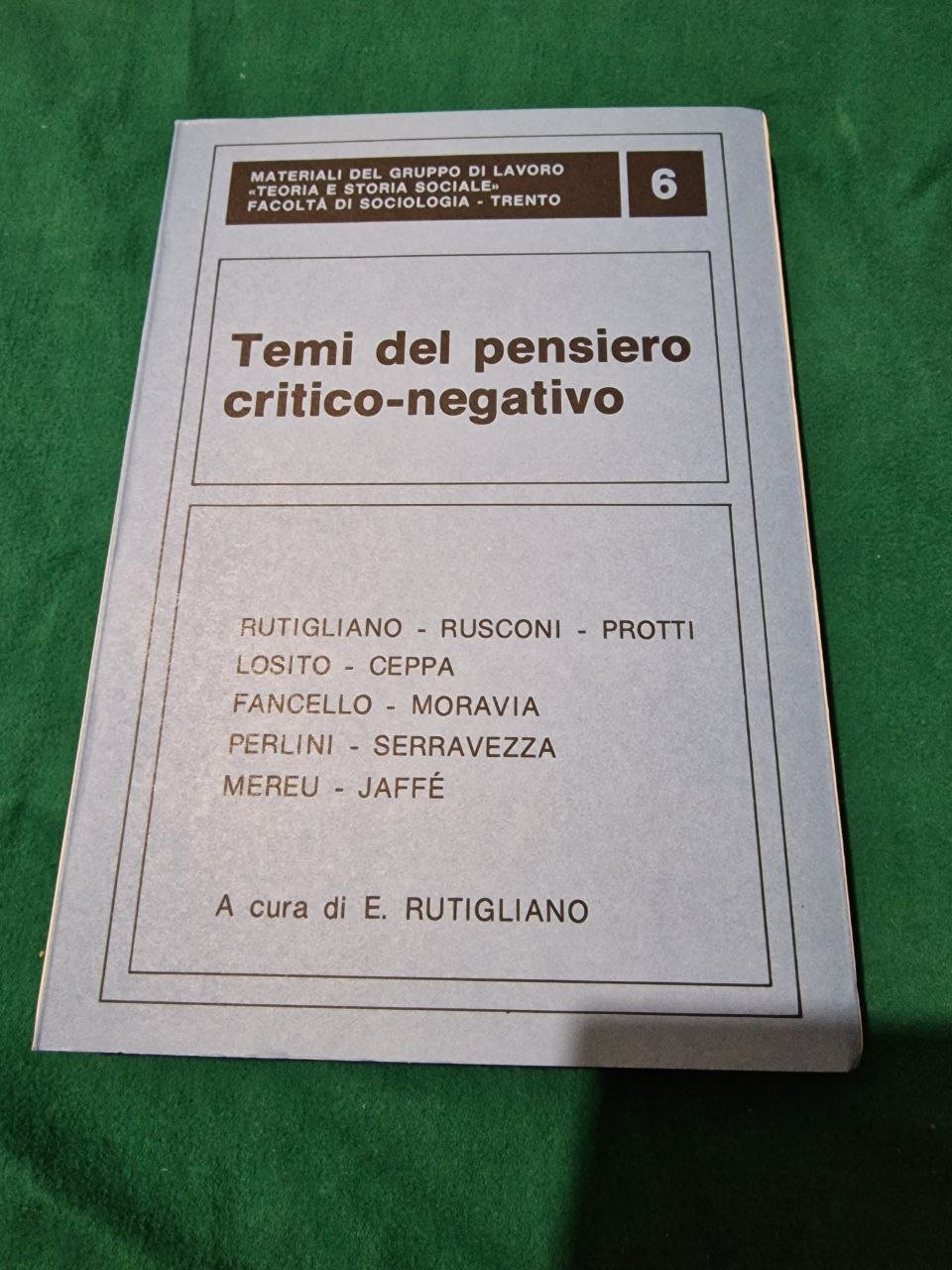 ATTI DEL CONVEGNO IL PENSIERO CRITICO NEGATIVO COLLANA MATERIALI DEL GRUPPO DI LAVORO TEORIA E STORIA sociale n 6