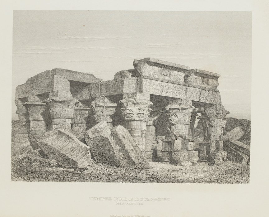 Bella veduta delel rovine del Tempio di Kom Ombo in Aswan, Egitto del 1860 circa. Data: 1860 circa Atlante: Meyer s Universum 1838-1860 circa Tecnica: Incisione su acciaio Dimensione del foglio: 15,5x23 cm Dimensione dell'incisione: 12x16,5 cm Condizioni: Buone. Alcune fioriture. Nice view of ruins of the Temple of Kom Ombo in Aswan, Egypt of 1860 circa. Date: 1860 circa Atlas: Meyer s Universum 1838-1860 circa Technique: Steel etching Leaf Dimension: 15,5x23 cm (4,7x9.1 inches) Engraving Dimension: 12x16,5 cm (4.3x6.5 inches) Conditions: Good conditions. Some foxings