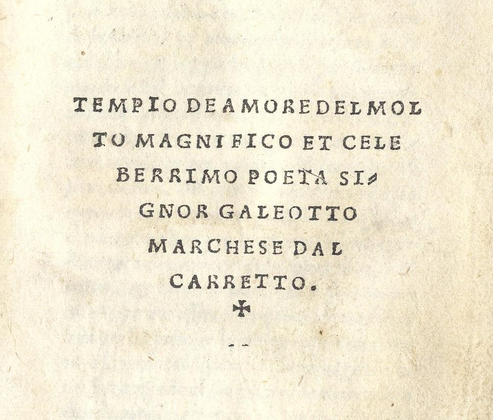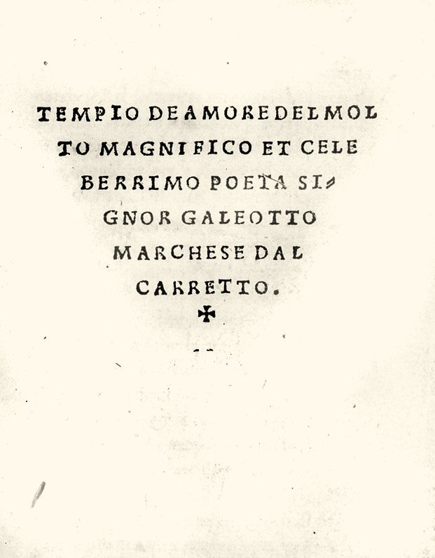 Tempio de Amore del molto magnifico et celeberrimo poeta signor Galeotto marchese Dal Carretto.