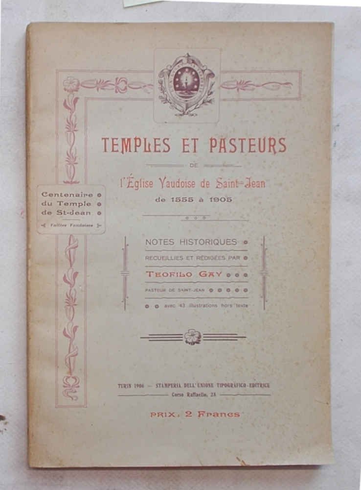 Temples et pasteurs de l'eglise Vaudoise de Saint-Jean de 1555 à 1905. Notes historiques.