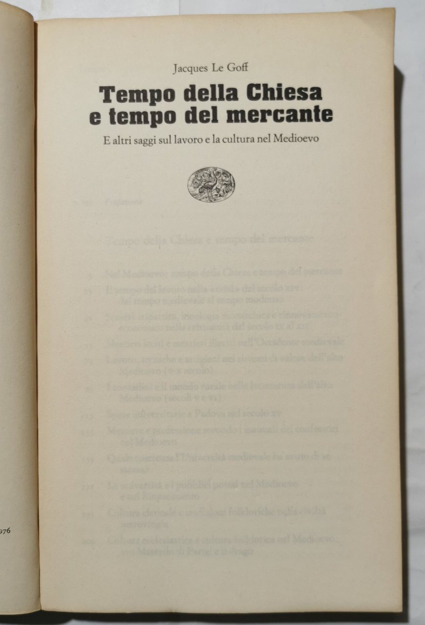 Tempo della Chiesa e tempo dcel mercante - E altri saggi sul lavoro e la cultura nel Medioevo