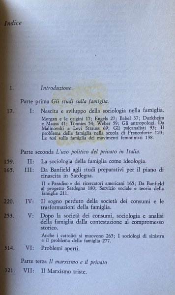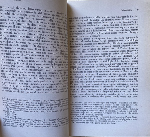 Soggetti: Sociologia politica, Antropologia, Opere generali, Scienze sociali, Studi sulla famiglia, Critica sociale, Società, Communism, Families, Franco Ferrarotti, Morgan, Engels, Babel, Durkheim, Mauss, Tonnies, Max Weber, Malinovski, Levy-Strauss, Psicanalisti, Scuola di Francoforte, Movimenti studenteschi, Contestazione, Femminismo, Ideologie politiche, Sardegna, Banfield, Rinascita, Consumismo, Trasformazioni sociali, Autorità, Patriarcato, Matriarcato, Compromesso storico, Chiesa, Cattolici, Sinistra, Dibattiti, Anni Settanta, Privato, Pubblico, Marxismo, Bisogni, Teorie, Marx, Lenin, Formazione familiare, Lotta di classe, Stalin, Unione Sovietica, Emancipazione femminile, Genere, Ruoli, Istinto, Felicità, Relazioni, Rapporto uomo-donna, Alienazione, Reich, Fromm, Morale, Etica, Anti-psichiatria, Libri rari, Libri Vintage, Fuori catalogo, Bibliografia, Vita privata, Manifesto, 1977, Slogan, Femministe, Cultura, Dialettica, Claude Lévi-Strauss, Political Sociology, Anthropology, General Works, Social Sciences, Family Studies, Social Criticism, Society, Psychoanalysts, Frankfurt School, Student Movements, Dispute, Feminism, Political Ideologies, Sardinia, Rebirth, Bachofen, Consumerism, Social Transformations, Authority, Patriarchate, Matriarchy, Historical Compromise, Church, Catholics, Left, Debates, Seventies, Private, Public, Needs, Theories, Family Education, Class Struggle, Soviet Union, Female Emancipation, Gender, Roles, Instinct, Happiness, Relationships, Man-Woman Relationship , Alienation, Moral, Ethics, Anti-psychiatry, Rare books, Books out of print, Bibliography, Private life, Poster, Feminist, Culture, Dialectic