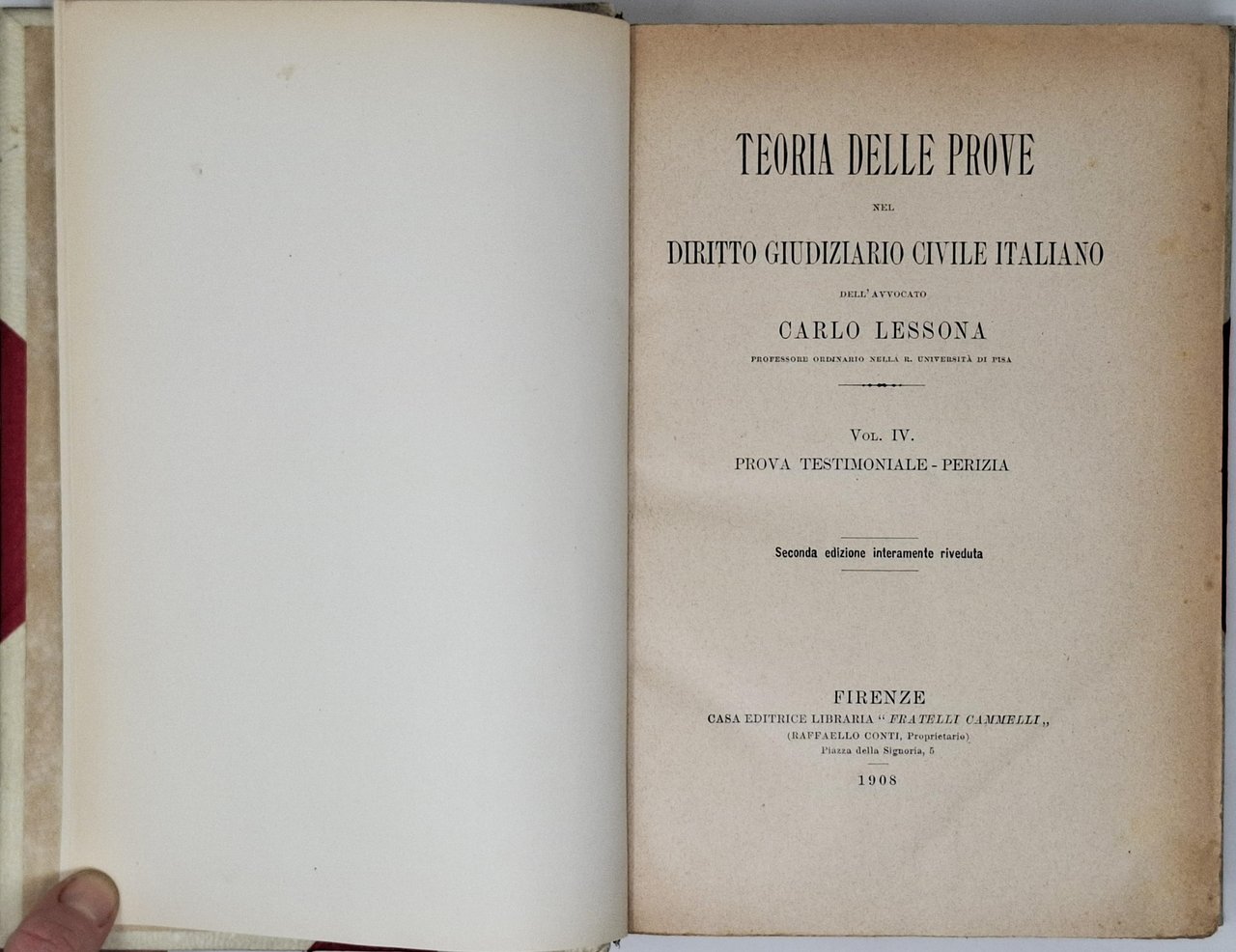 Teoria delle prove nel diritto giudiziario civile italiano. Vol. IV: Prova Testimoniale - perizia