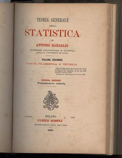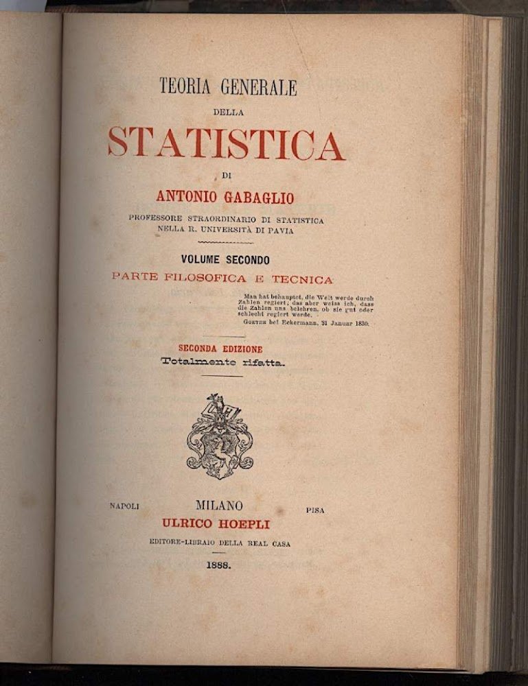 TEORIA GENERALE DELLA STATISTICA-PARTE STORICA-PARTE FILOSOFICA E TECNICA 2 voll. in 1-