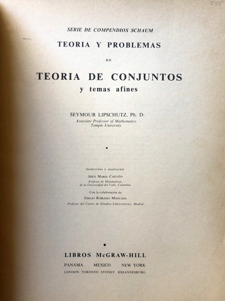 Titolo: Teoría de conjuntos y temas afines. Teoría y 530 problemas resueltos