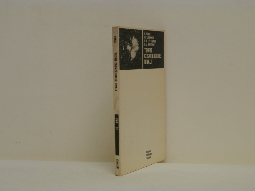 16°, mm 180x105, pp. 78 (5), brossura editoriale, più che buono stato di conservazione, normali segni d'uso al dorso, interno perfettamente intonso. Collana "Piccola Biblioteca Einaudi", n. 55, traduzione di Cesare Salmaggi. W. B. Bonnor: Modelli relativistici dell'universo; H. Bondi: La teoria cosmologica dello stato stabile; R. A. Lyttleton: Un universo elettrico; R. A. Lyttleton: Dibattito sulle teorie rivali.. *** TUTTI I NOSTRI LIBRI SONO VISIBILI PREVIO CONTATTO MAIL O TELEFONO NELLA NUOVA SEDE DI MILANO: LIBRERIA COSMOPOLIS, VIA JOMMELLI, 22. ***