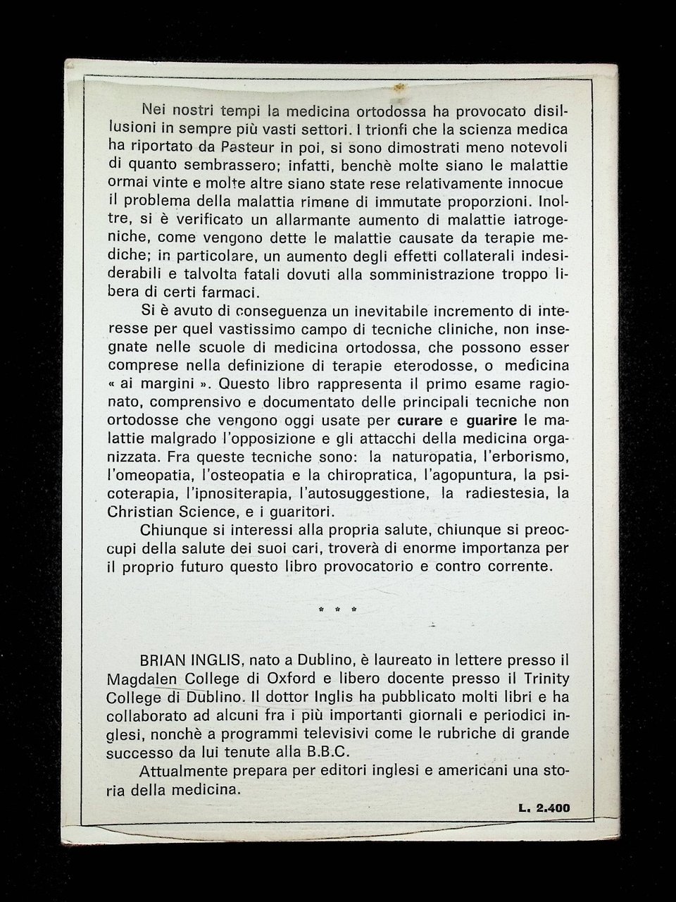 Terapie Eterodosse LIbro Brian Inglis Radiestesia Omeopatia Yoga Agopuntura 1967