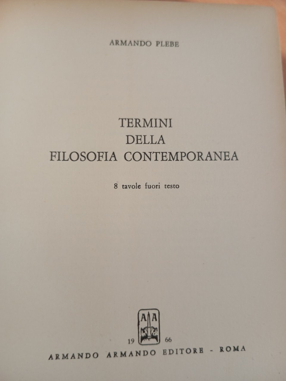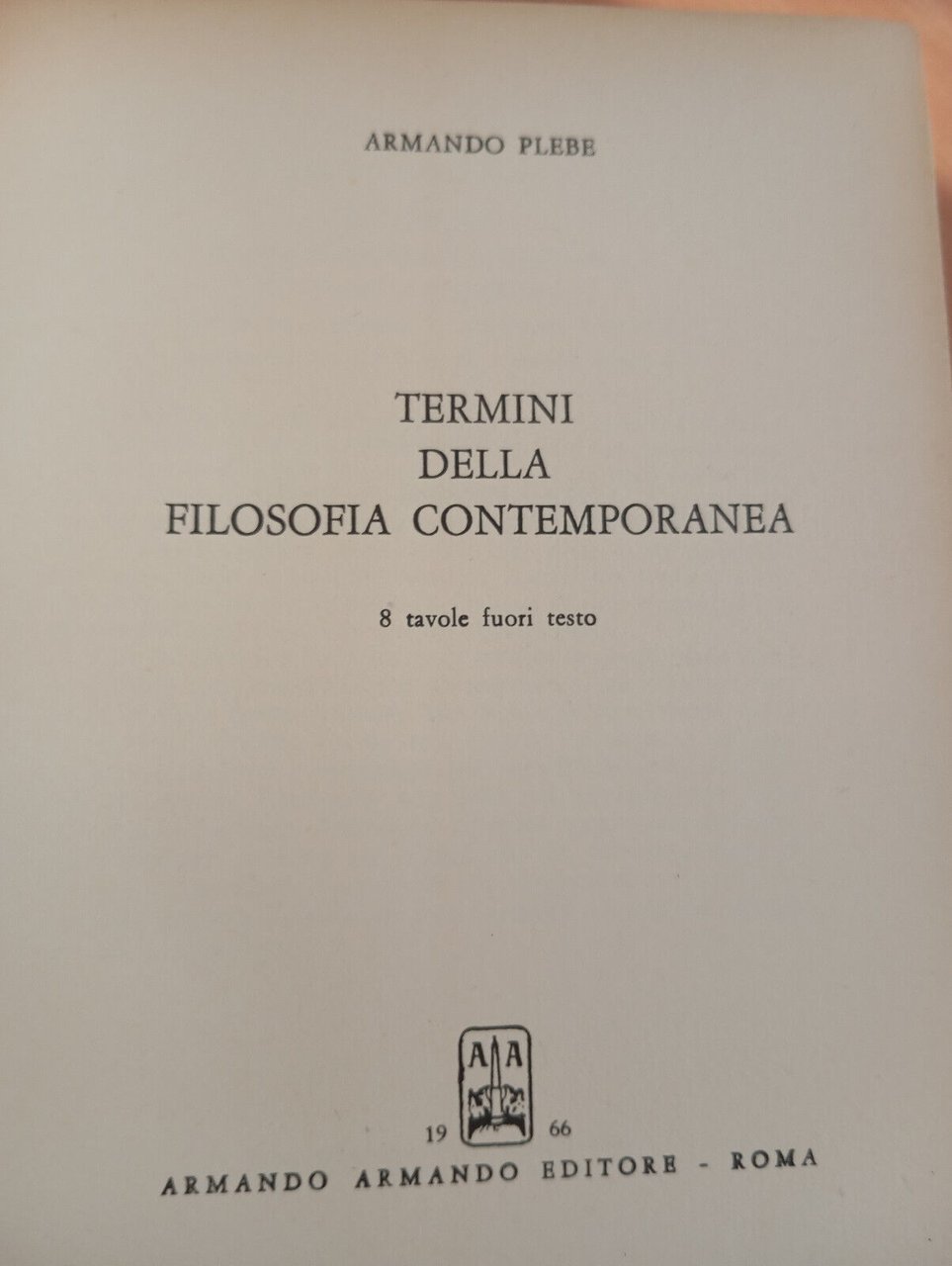 Termini della filosofia contemporanea, Armando Plebe, Armando, 1966