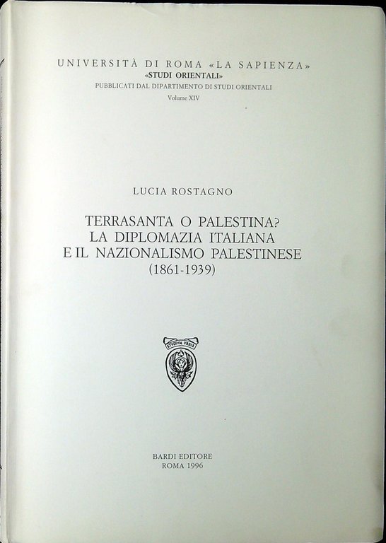 Rostagno , Lucia Terrasanta o Palestina? La diplomazia italiana e il nazionalismo palestinese, 1861-1939. Roma, Bardi 1996, Università degli studi La Sapienza 14 26 cm. XI, 378 p., 3 c. di tav. (71546)