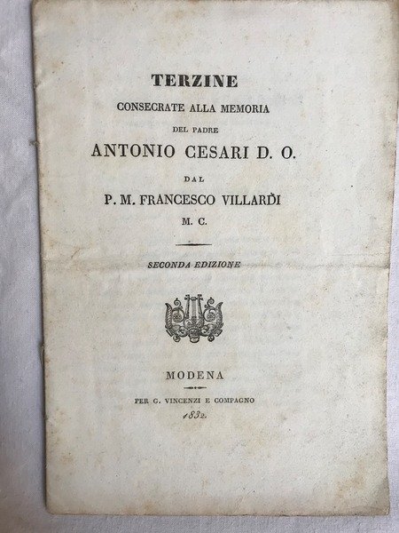 TERZINE Consacrate alla Memoria del Padre Antonio Cesari D. O.