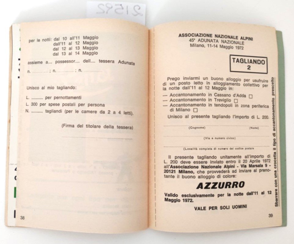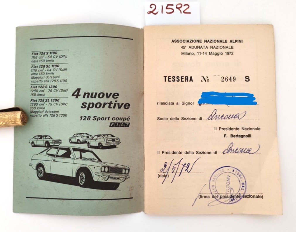 Tessera associazione nazionale alpini 45° adunata Milano 1972