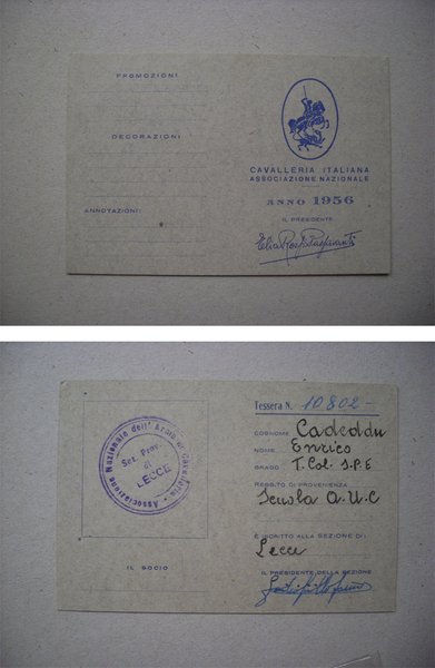 Tessera CAVALLERIA ITALIANA Associazione Nazionale 1956 (Cadeddu Enrico)