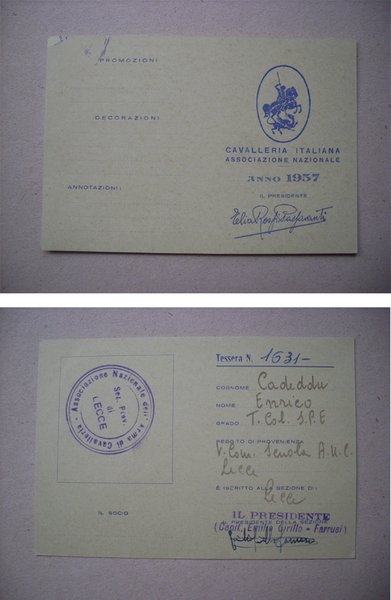 Tessera CAVALLERIA ITALIANA Associazione Nazionale 1957 (Cadeddu Enrico)
