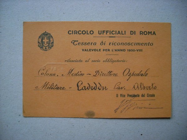Tessera CIRCOLO UFFICIALI di ROMA 1930 (Albero Cadeddu)