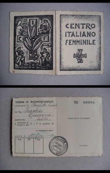Tessera di riconoscimento "Centro Italiano Femminile C.I.F" 1950