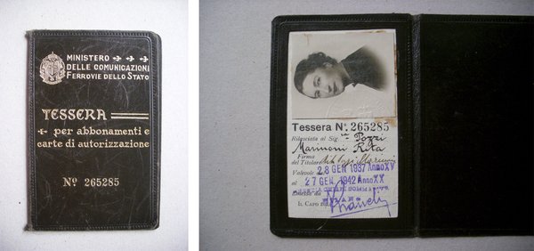 Tessera per abbonamenti e carte di autorizzazione. Ministero Comunicazioni FERROVIE DELLO STATO 1937 (in pelle)