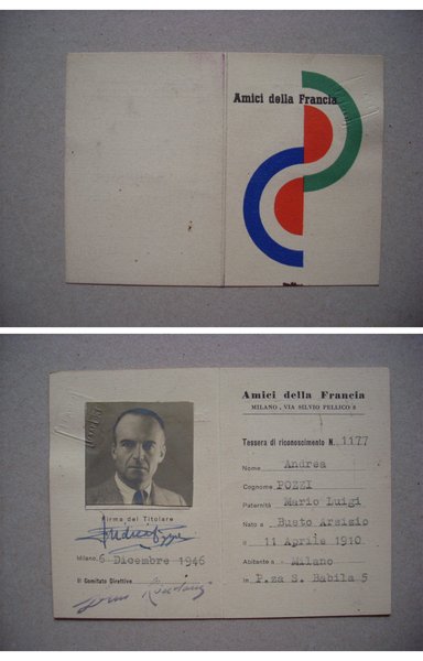 *Tessera Socio AMICI DELLA FRANCIA Milano 1946