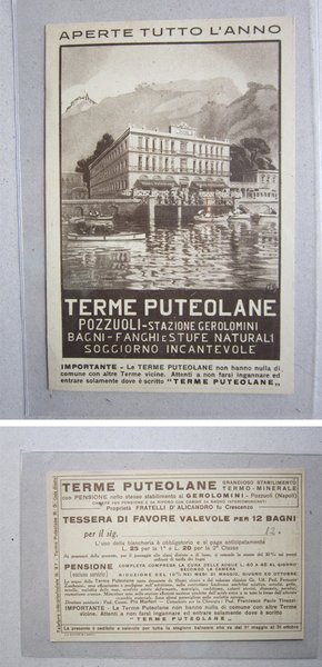 Tessera valevole per 12 bagni TERME PUTEOLANE - POZZUOLI Stazione Gerolomini Bagni, Fanghi e Stufe.