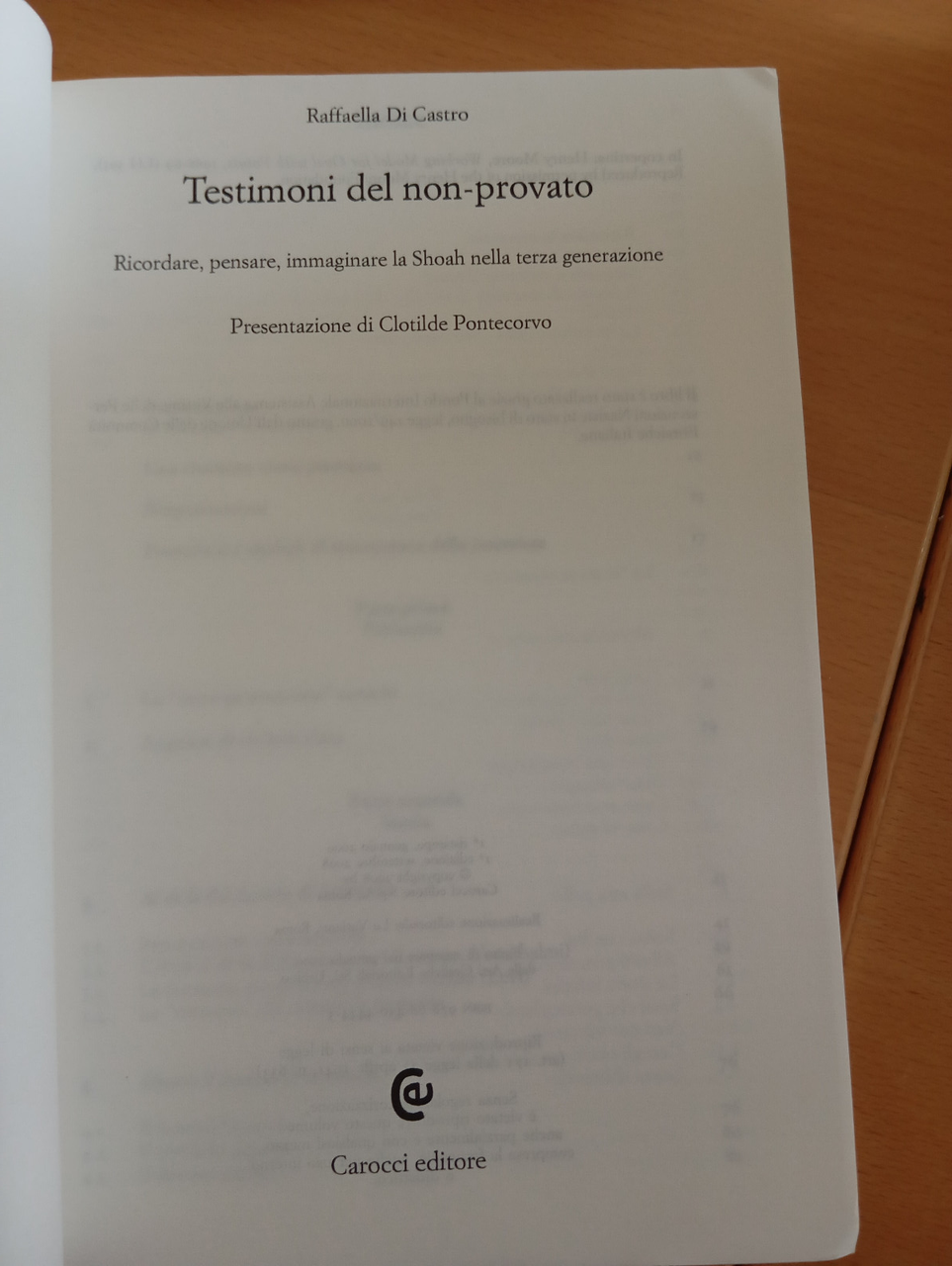 Testimoni del non provato, la Shoah nella terza generazione, Carocci, 2009