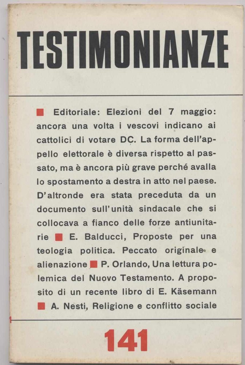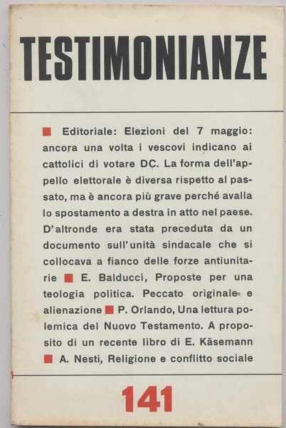 Testimonianze - n. 141 Gennaio-Febbraio 1972 (Rivista religiosa a carattere politico-sociale)