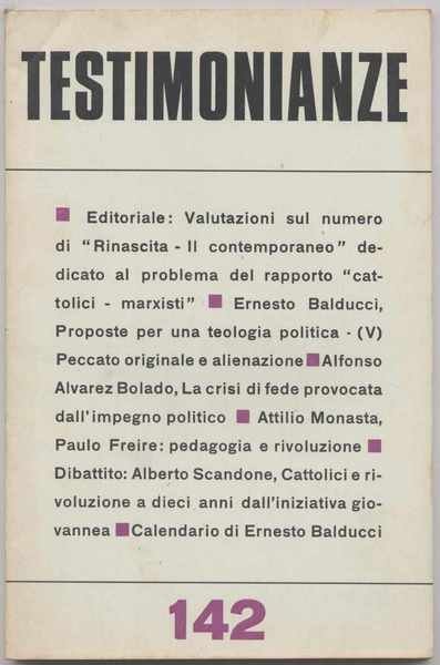 Testimonianze - n. 142 Marzo 1972 (Rivista religiosa a carattere politico-sociale)