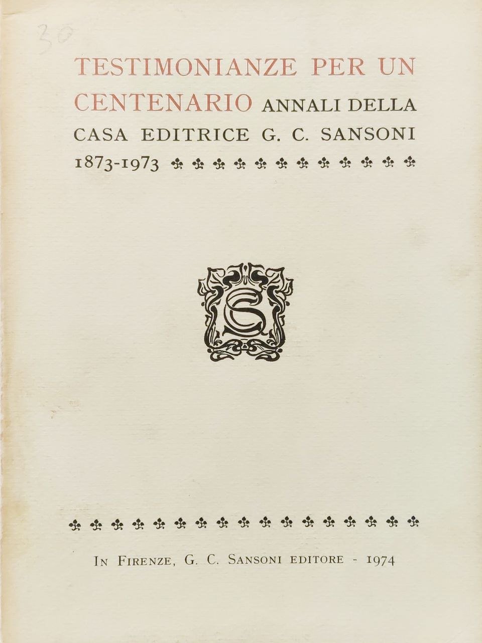 TESTIMONIANZE PER UN CENTENARIO. ANNALI DELLA CASA EDITRICE G.C. SANSONI.