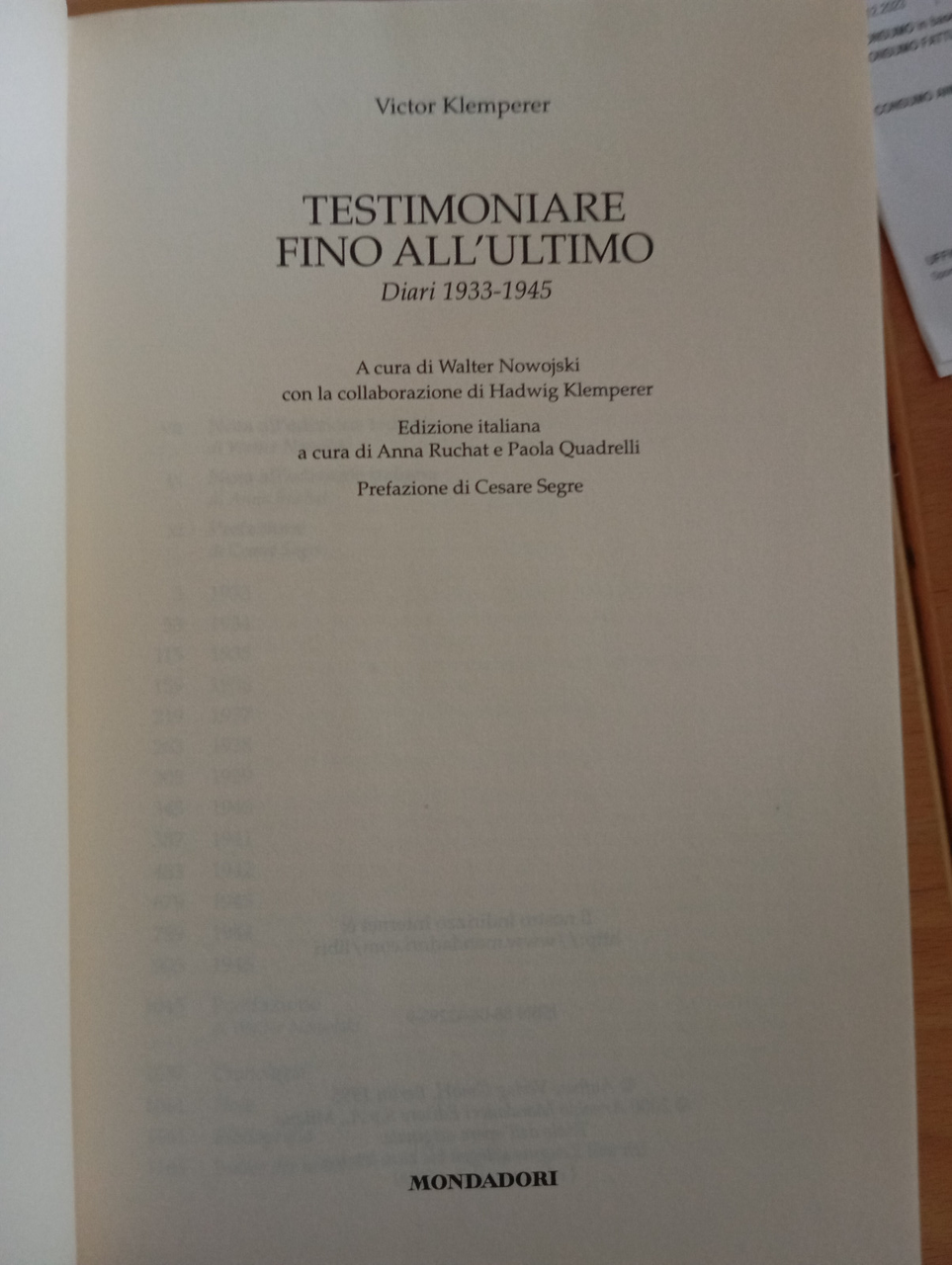 Testimoniare fino all'ultimo. Diari 1933-1945, Victor Klemperer, Mondadori, 2000