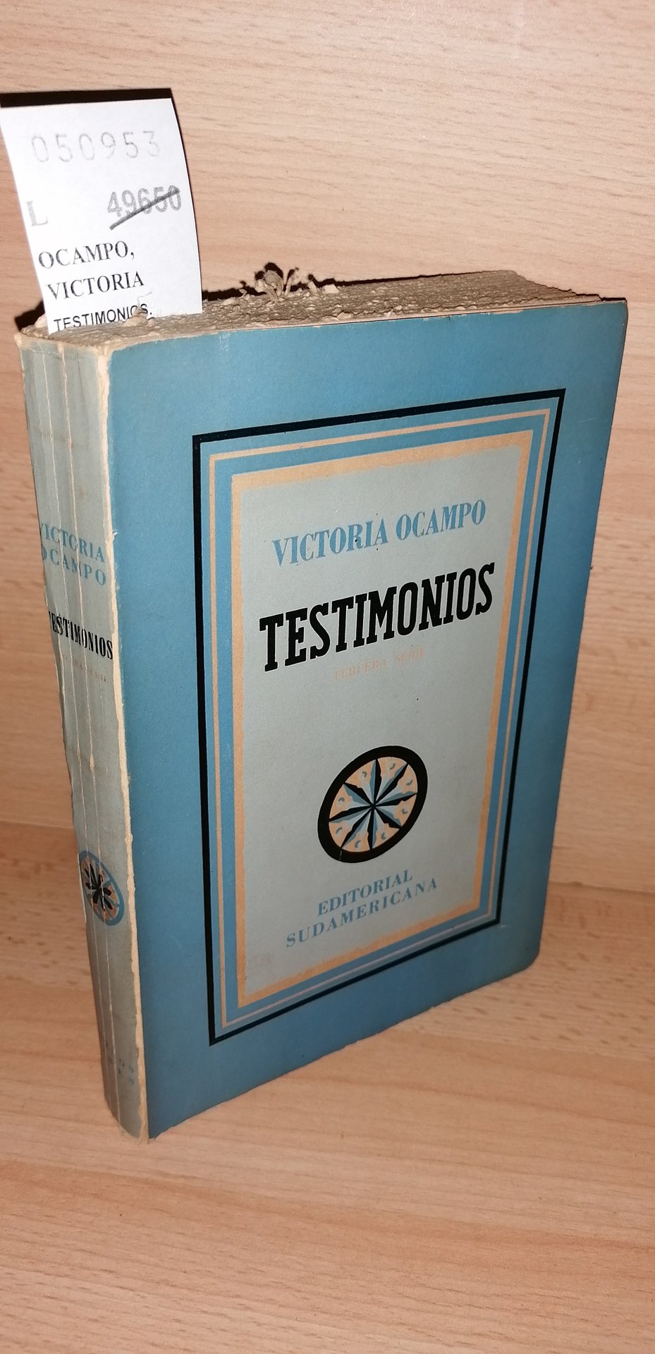 OCAMPO, VICTORIA TESTIMONIOS. TERCERA SERIE Editorial Sudamericana. Buenos Aires. 1946 295 p. (21 cm) Enc. rustica con solapa fotografias en bn. Ex-libris y firma de anterior propietario L (Ref.50953) literatura viajes america autobiografia