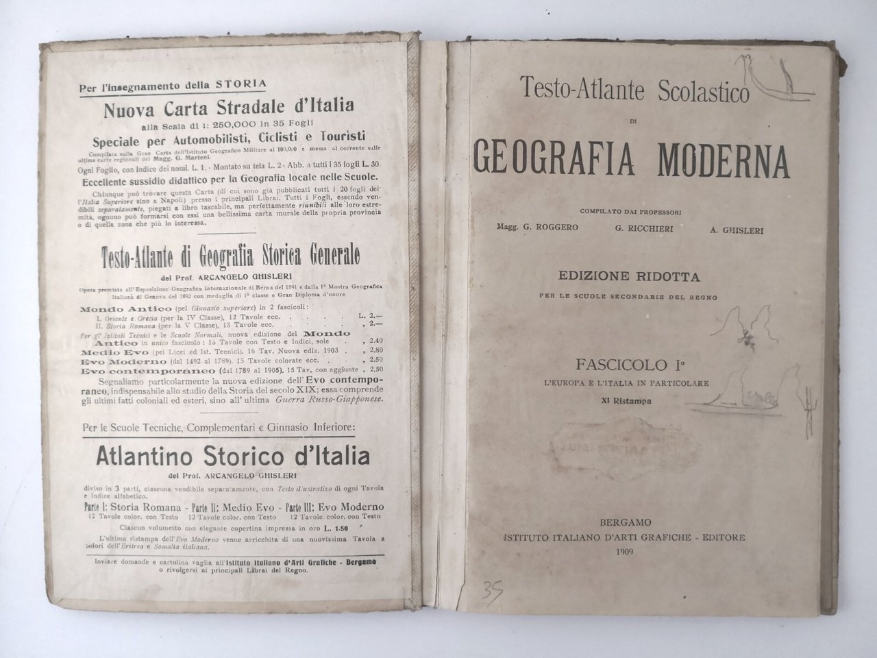 TESTO ATLANTE SCOLASTICO DI GEOGRAFIA MODERNA Ricchieri Ghisleri 1909 Libro