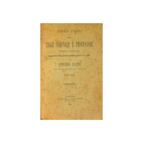 Approvato il 10 febbraio 1889. Aggiuntovi il Decreto che modifica gli art. 11 e 269 e disposizioni relative. - in 16° - pp.83 - Brossura editoriale - Esemplare discreto. - Strappo al dorso. Ingialliture alla brossura e alle pagine