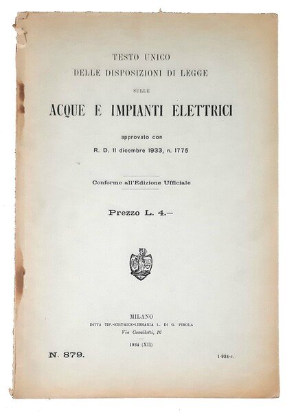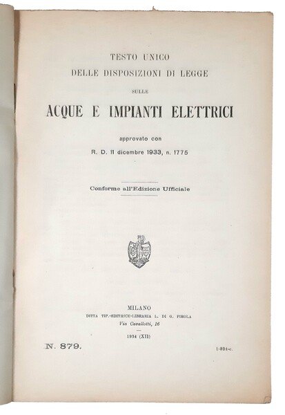 Testo unico delle disposizioni di legge sulle acque e impianti elettrici approvato con r. D. 11 Dicembre 1933, n. 1775.