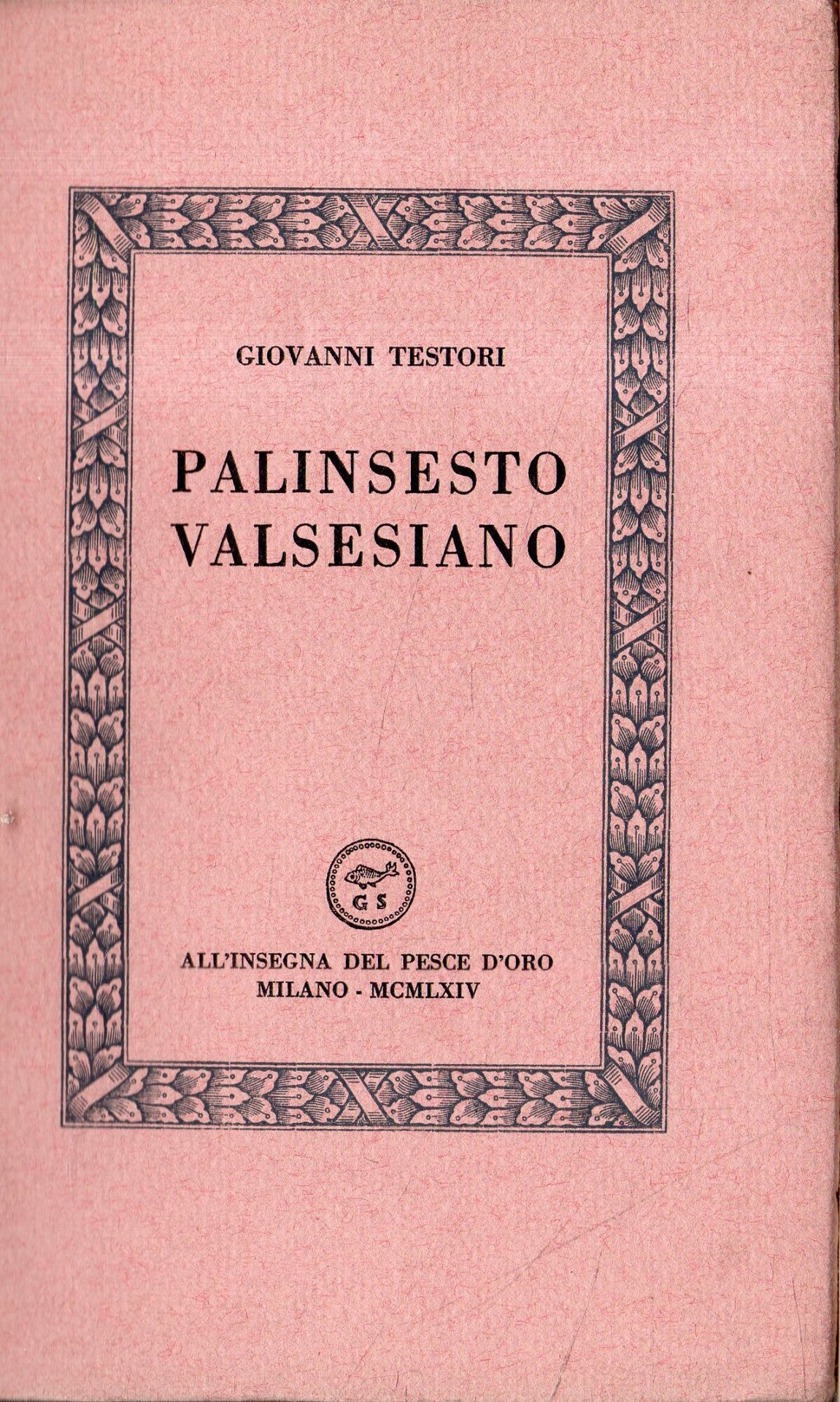Testori - Palinsesto Valsesiano - All'insegna Del Pesce D'oro. 1964
