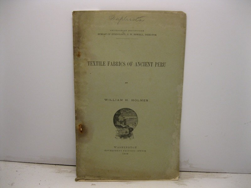 In 8, pp. 17 + (1b) con ill. n.t. Macchie di ruggine al marg. int. delle cc. Br. ed. Interessante saggio sulla lavorazione tessile nell'antico Peru'.