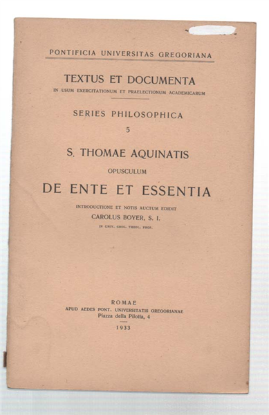 Textus Et Documenta In Usum Exercitationum Et Praelectionum Academicarum. Series Philosophica 5 S. Thomae Aquinatis Opusculum De Ente Et Essentia