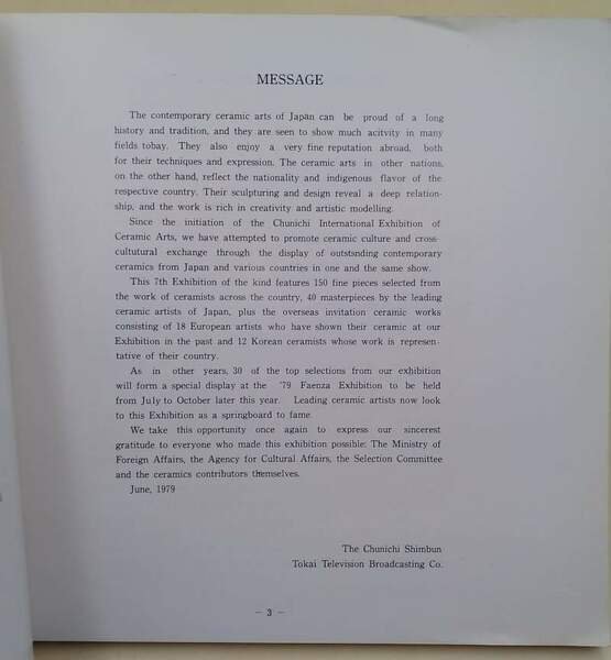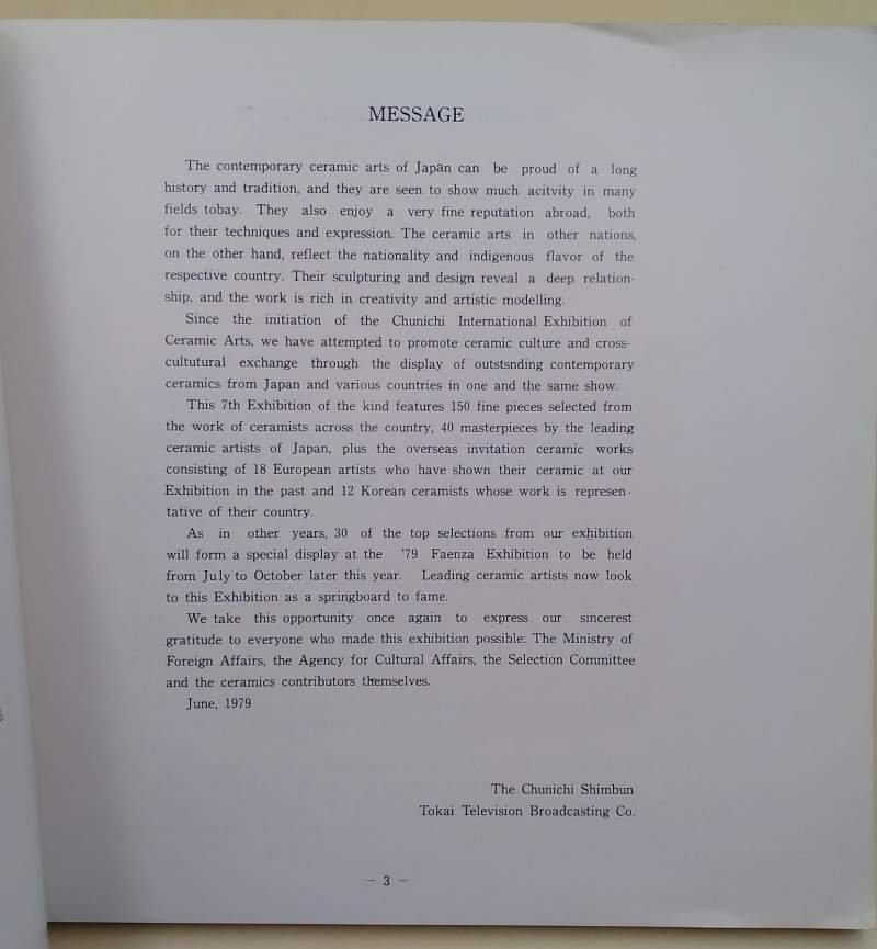 THE 7TH CHUNICHI INTERNATIONAL EXHIBITION OF CERAMIC ARTS(1979)