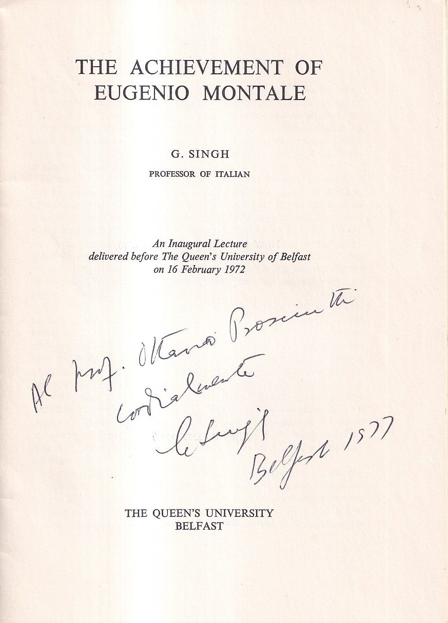 "An inaugural lecture delivered before the Queen's University of Belfast on 16 February 1972" - Brossura editoriale di 26 pagine. Dedica autografa del professore al frontespizio. Esemplare in ottime condizioni.