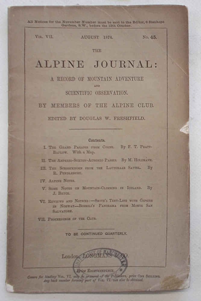 The Alpine Journal. August 1874. Vol. VII. No. 45.