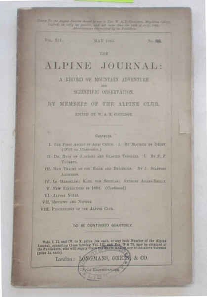 In 8° (cm. 20,5 x 14,5); pagg. da 209 a 288; con 1 illustrazioni f.t.; brossura originale. Timbro. VG-. ** Contiene, tra l'altro: STAFFORD ANDERSON New tracks on the Eiger and Breithorn. - DE DECHI' The first ascent of Adai Choc. (con 1 bella tavola in fototipia f.t.)