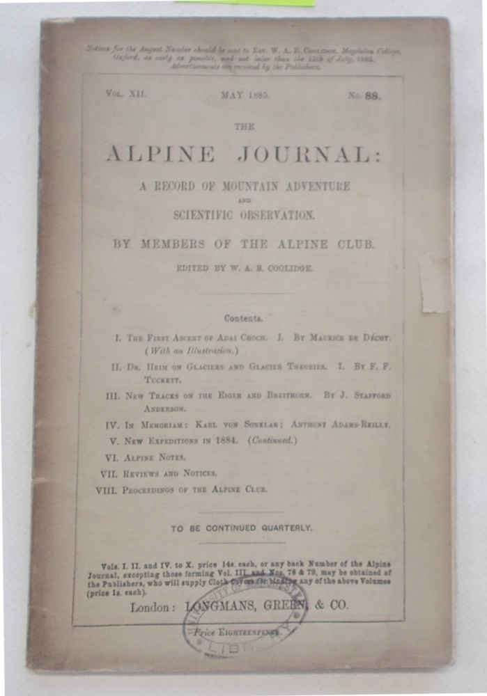 The Alpine Journal. May 1885. Vol. XII. No.88.