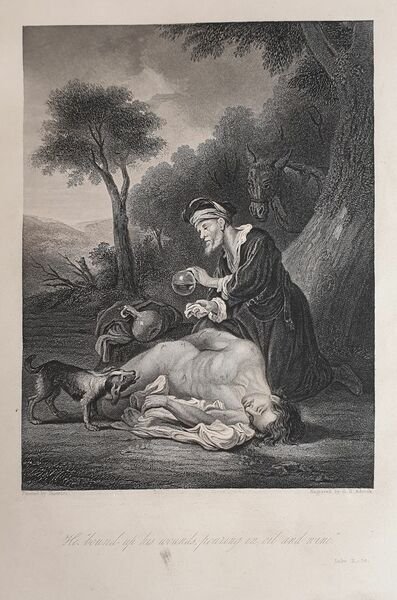 Raccolta di 25 incisioni su acciaio pubblicate dalla "London printing and publishing company limited". Le incisioni, tutte di argomento biblico sono tratte dall'opera di preghiere "The altar of the household" del reverendo Alexander Lindsay Harris. Le incisioni sono di diverse autori: Greatbatch, Andre Sacchi, H. Rolls, Copley, Poussain, Robinson, H. Staines, Melville, R. Staines, Carracci, Adcock, Tra le scene: Morte di Abele, Gesu Cristo prima di Ponzio Pilato, Le tre Marie, Il signore da i suoi insegnamenti, Gesu predice la distruzione di Gerusalemme, predicazione nel Tempio ecc. In buone condizioni. Copertina in piena pelle con titolo e decorazioni in oro al dorso in mediocri condizioni generali con usure e parti mancanti ai margini e dorso. Legatura in buone condizioni ma con rotture alle sguardie. All'interno le pagine si presentano in buone condizioni con fioriture. Strappo orizzontale alla planche n. 18. Lievi gore al margine inferiore di qualche planche. In 4. cm 31x24. pp. (26). Peso Kg. 0,500.Collection of 25 steel engravings published by "London printing and publishing company limited". The engravings all of Bible theme has been taken from the work of prayer by Rev. Alexander Lindsay Harris "The altar of the household". The engravings are of different authors: Greatbatch, Andre Sacchi, H. Rolls, Copley, Poussain, Robinson, H. Staines, Melville, R. Staines, Carracci, Adcock, The scenes: Death of Abel, Jesus Christ before Ponzio Pilato, thre Maries, The Lord gives his teachings, Jsus preeches the destruction of Jerusalem, Preech in the Temple ecc. In good conditions. Full leather cover with golden title and decorations in the spine in poor general conditions with wearings and missing parts in the edges and spine. Binding in good conditions with cracks in the endpages. Inside pages are in good conditions with foxings. Horizontal tear in planche n. 18. Slight water stain in the. lower edge of some planche. In 4. cm 31x24. pp. (26). Peso Kg. 0,500.